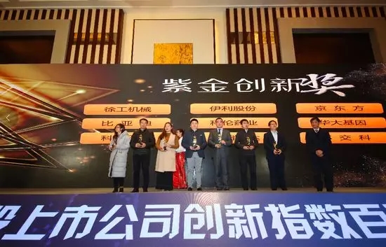论坛现场还依次发布了荣获2018中国A股上市公司创新指数百强榜·最具影响力上市公司领袖、功勋董秘奖、金牌董秘奖、最佳资本新锐奖、最佳市值管理上市公司、最佳中小板上市公司、最佳持续投资价值奖上市公司、最佳社会责任奖上市公司、紫金创新奖等奖项。其中多氟多、许继电气、双汇发展、国电南瑞、紫光股份、徐工机械、伊利股份、比亚迪、科沃斯获得多项奖项。
